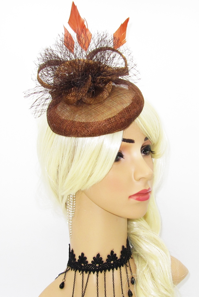 Шляпка таблетка летняя из синамей Вероника шоколадного цвета. Крепится на узкий ободок или на заколку на выбор (все в комплекте). Диаметр шляпки 14 см, высота с декором примерно 7 см.